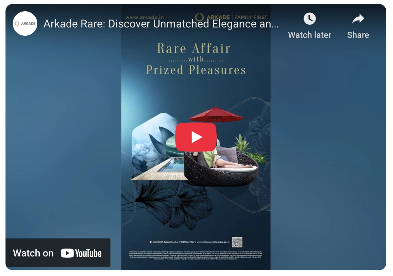 Arkade Rare - A premium residential development in Bhandup West, Mumbai, offering luxurious 2 & 3 BHK apartments designed for modern urban living. With contemporary architecture and thoughtfully planned spaces, this project blends sophistication, comfort, and convenience. Located in a prime neighborhood, Arkade Rare features world-class amenities, including a state-of-the-art gym, swimming pool, landscaped gardens, and a children's play area. Every residence is crafted for style and functionality, ensuring a refined living experience for families.